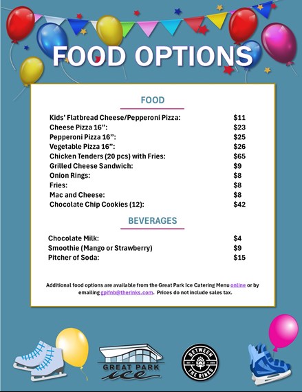 - Birthday parties are scheduled during all scheduled Public Skating Sessions.